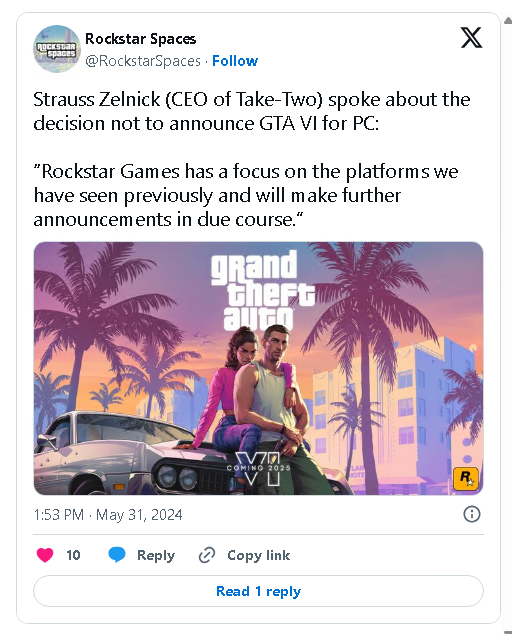 Despite No GTA 6 PC Release Date, Take-Two CEO Admits PC Gaming’s Influence Is Growing